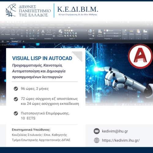 - Ενότητα 1: Περιβάλλον AutoCAD & Visual LISP (ανάγκες, δυνατότητες)