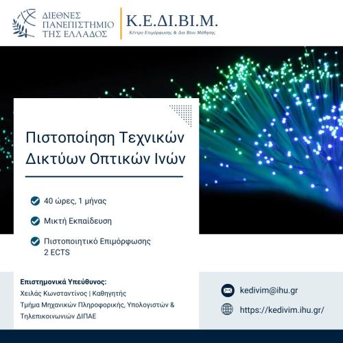 - Εσωτερικές και εξωτερικές εγκαταστάσεις οπτικών ινών (3 ώρες)