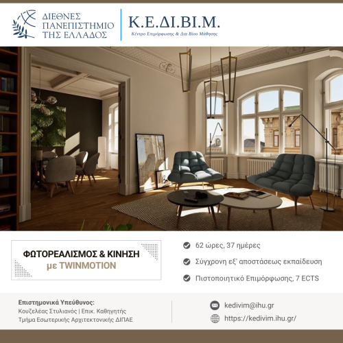 - Γνωρίζουν τις διευθύνσεις εκμάθησης (tutorials) του Twinmotion καθώς και τη ψηφιακή πύλη του μαθήματος του σεμιναρίου