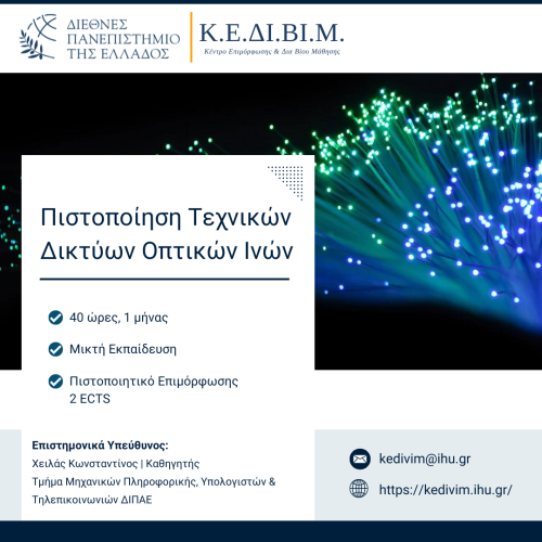 - Εφαρμογές κι εγκαταστάσεις οπτικών ινών (3 ώρες)